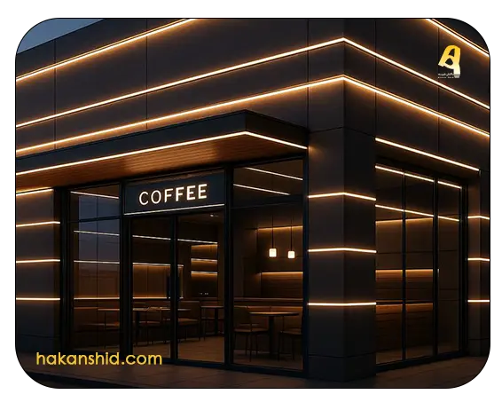 ۸. نورپردازی بیرونی کافیشاپ
