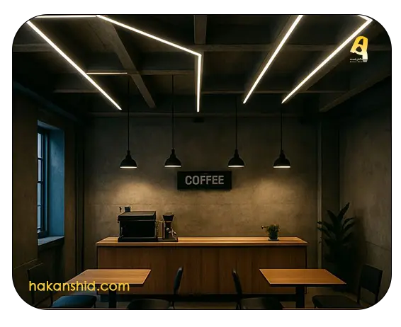 - نصب لاین نوری روی دیوارهای جانبی کافیشاپ برای ایجاد عمق و بعد